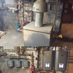 We’ve just completed an impressive upgrade for a homeowner, replacing an outdated cast iron boiler and electric water heater with a modern all-in-one solution! This