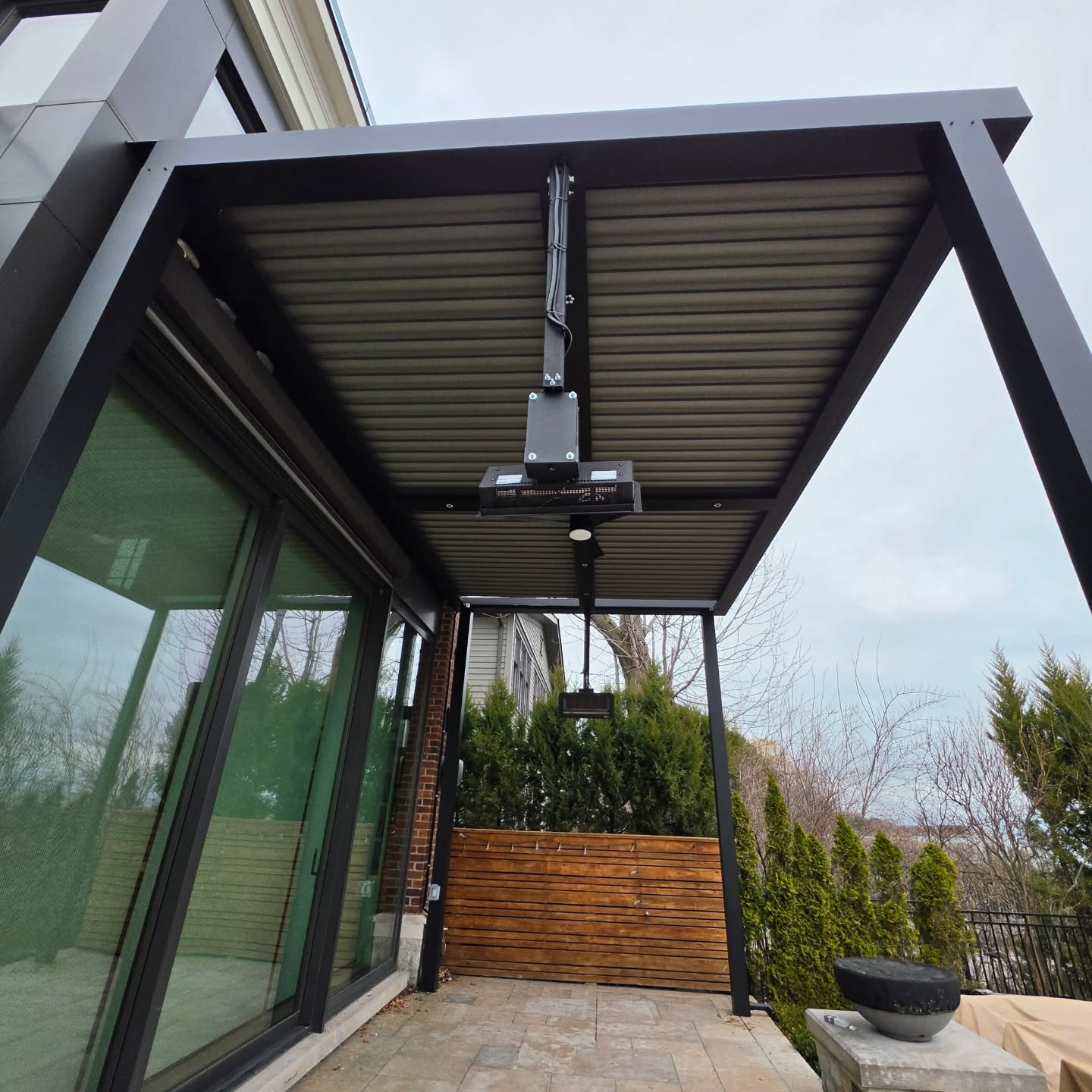 Just in time for patio season, we’ve installed these sleek overhead gas patio heaters, the perfect way to keep your outdoor space warm and inviting, even on cooler evenings.